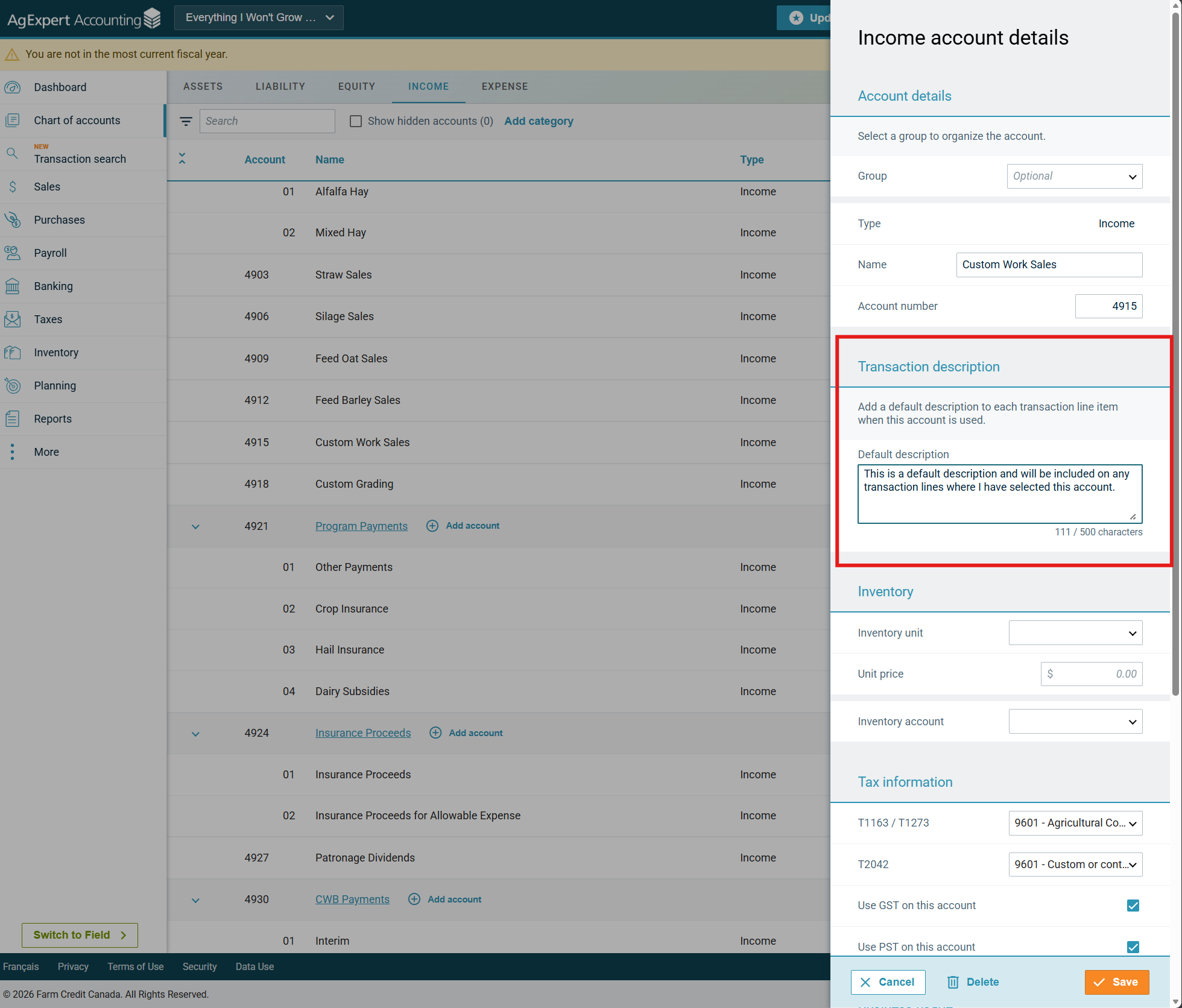 Prepopulated description on purchases and sales